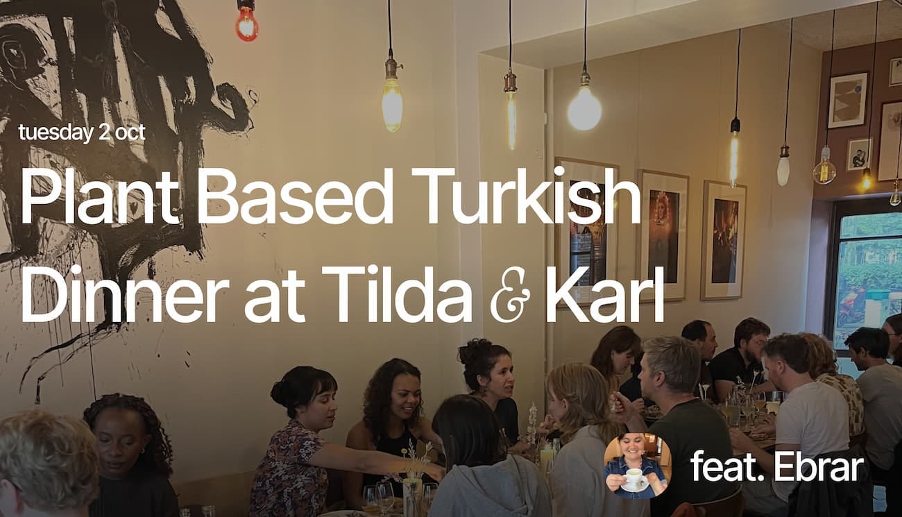 You are hereby invited to our next Plant Based Turkish Dinner on October 2nd, led by our chef, Ebrar!