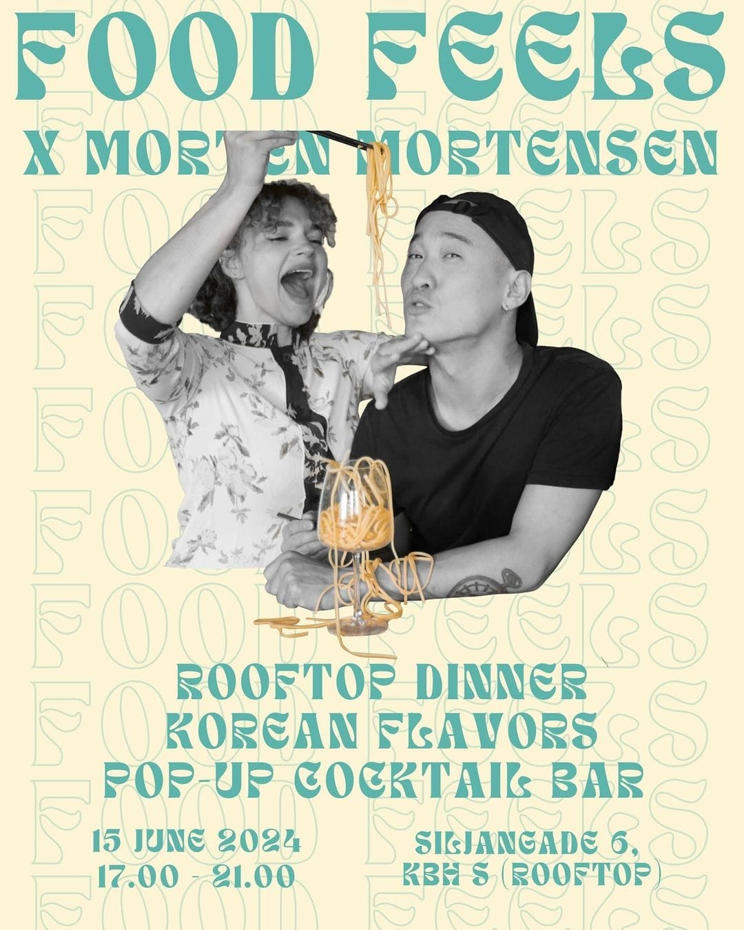 Welcome to this yearâs Food Feels pop-up; this time in collaboration with Korean-born Morten Mortensen. If youâve experienced Food Feels events before, you know that the food is an interactive experience filled with flavors, colors and surprises. The experience unfolds as a long-table dinner on a rooftop with a view overlooking KlĂžvermarken and the towers of Copenhagen.Â
