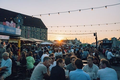 Kom og spis med mens solen går ned over Guldbergsgade.