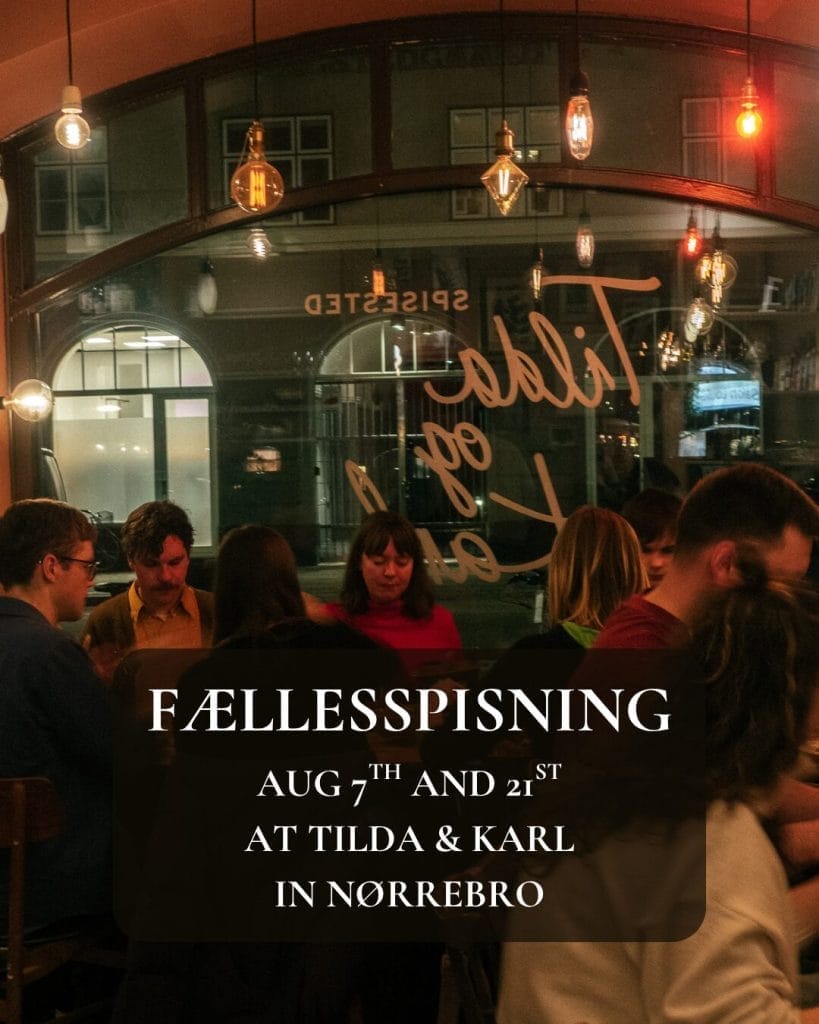 In August we are continuing our community dinners, aka. Fællesspisning at Tilda og Karl on 2 Thursdays: on the 7th and on the 21st.